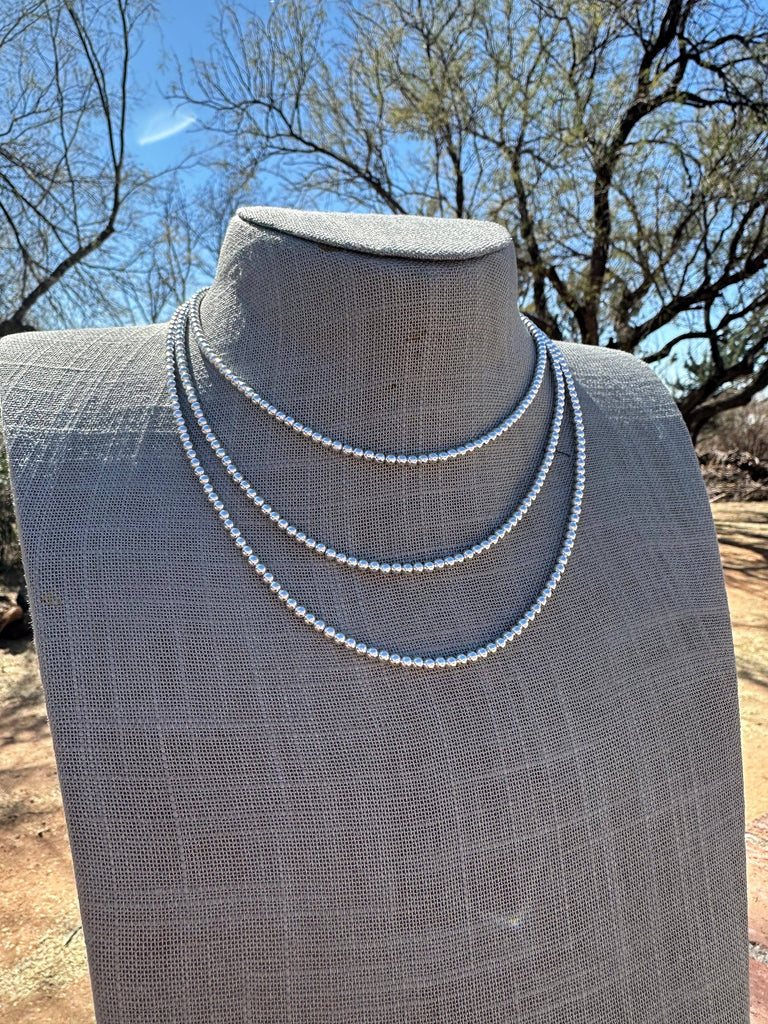 Beautiful Navajo Sterling Silver Elegant Pearl Style Beaded Necklace. Beads measure 3mm. Such a pretty piece! Navajo Strung