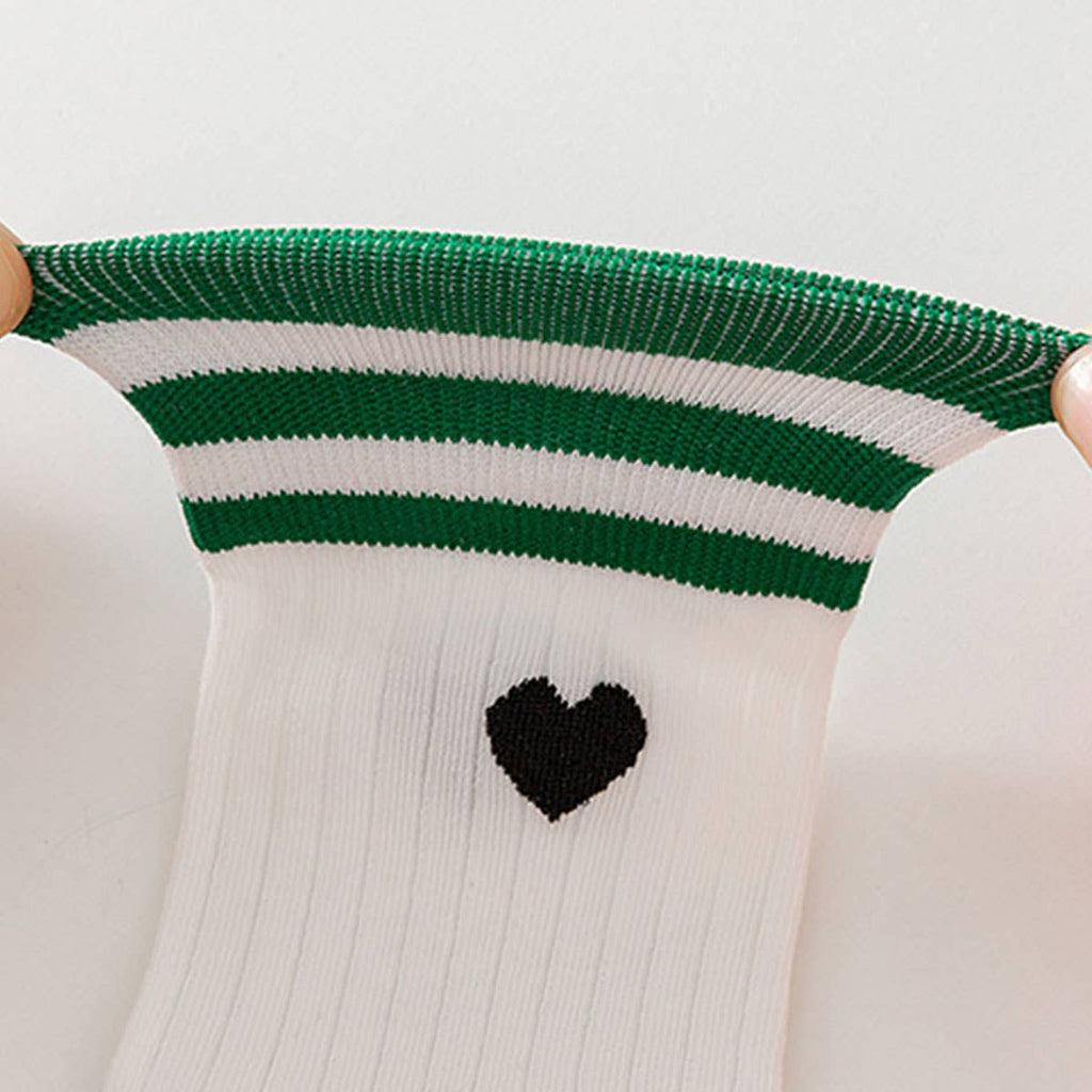 College Style Heart, Two Stripes Print Crew Socks
