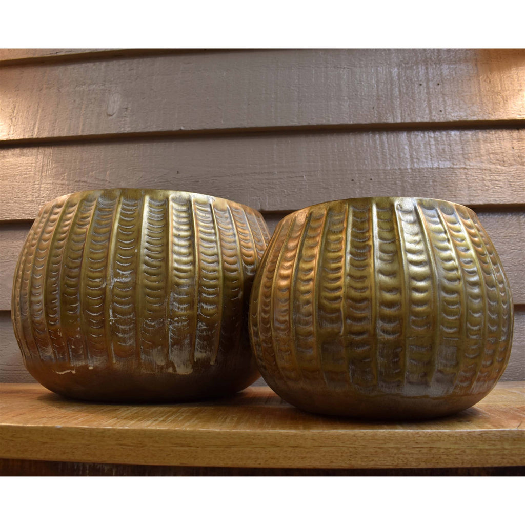 David Christopher's Collection presents the Embossed Metal Planters Set of 2. These planters, one small (10.75" x 7.75") and one large (13.75" x 9.75"), are perfect for adding a touch of elegance to your home decor. Crafted with care, these pieces reflect our commitment to quality design and affordability. Whether you're looking to add some greenery to your living space or seeking a stylish container for your plants, these embossed metal planters are an excellent choice. We strive to provide practical and aesthetically pleasing solutions for your home.