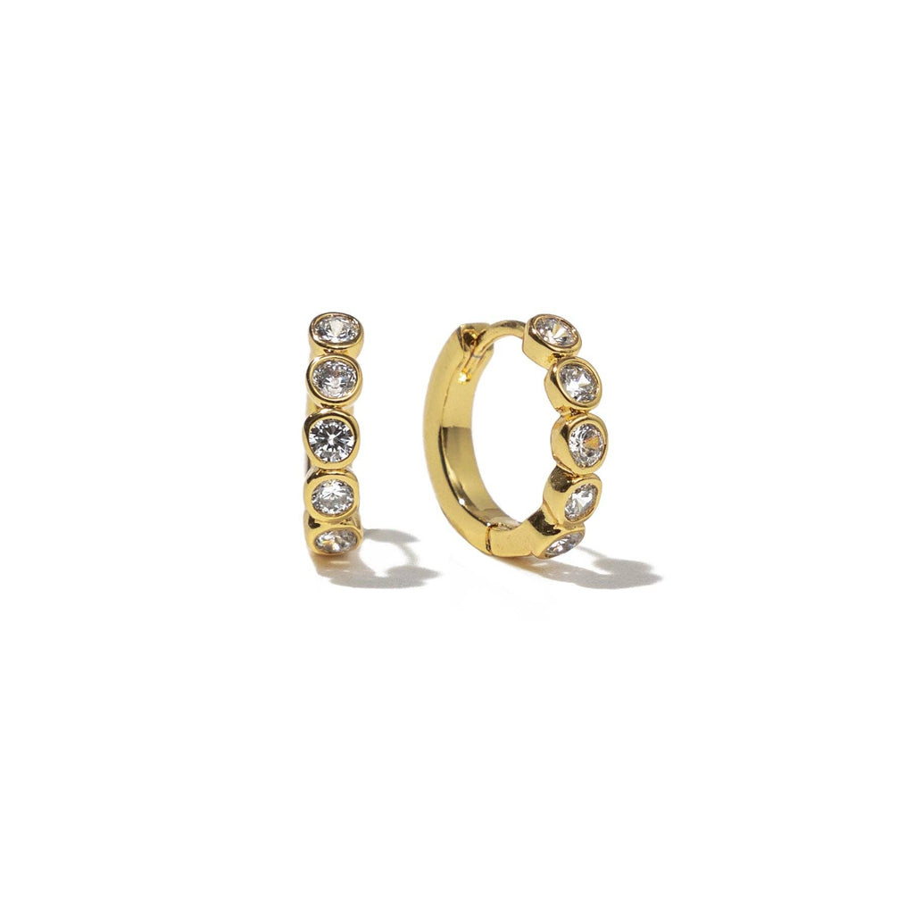 PRODUCT DETAILS * Water Resistant💧 * Brass * 18K Gold * Hypoallergenic * Nickel Free * SIZE:1 inch DESIGNER NOTE Sparkle baby! These new huggies are an instant bestseller inspired by the beauty you put into the world everyday. STYLE TIP: Shine bright and pair with the Zenith Huggies and Shiny Ear Cuff! Handmade in U.S.
