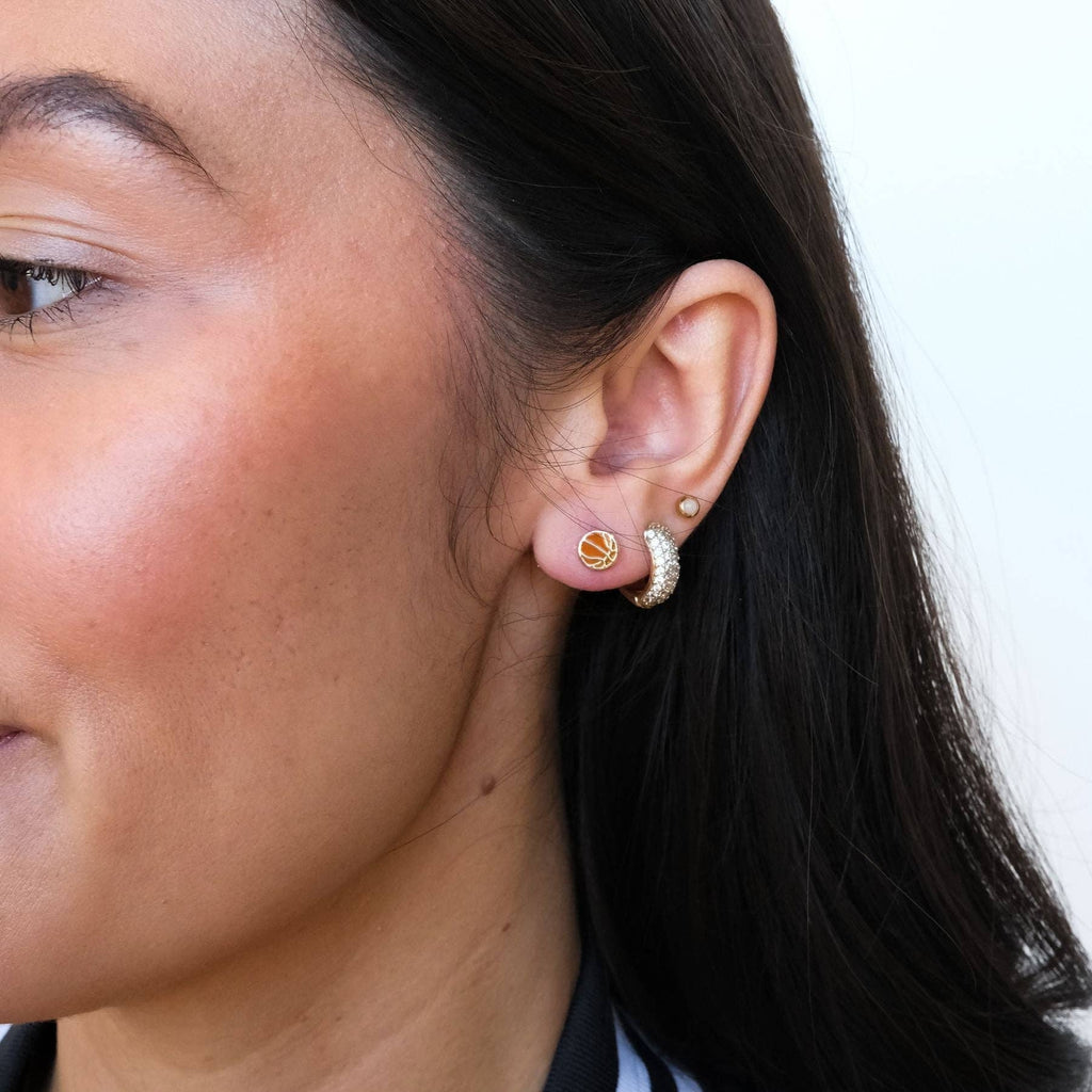 3...2...1... swoosh... nothing but net, it was a buzzerbeater ladies and gentlemen! Get gameday ready with Basketball Studs! This dainty stud earring makes the perfect gift for your favorite fan or accent for your gameday outfit.