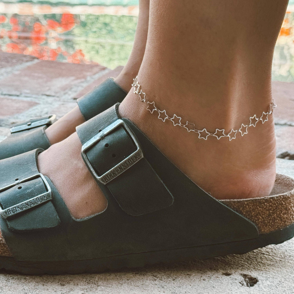 We love this so much. Stainless steel Star Anklet with extender chain.