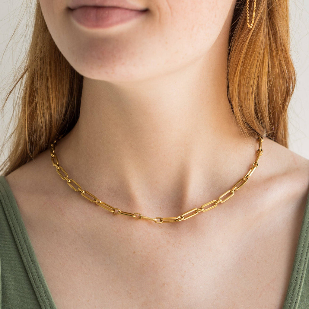 PRODUCT DETAIL * Waterproof💧💧💧 * Stainless Steel * 18K Gold * Handmade * Hypoallergenic * Nickel Free * Size: Length 18" Adjustable to make it shorter * Closure: Lobster Clasp DESIGNER NOTE Our stylish Paper Clip Chain Necklace is a contemporary accessory that combines simplicity with modern edge. This necklace features a trendy paper clip-inspired chain design, crafted with precision and finished with a sleek and versatile appeal, making it the perfect choice to elevate your everyday style.