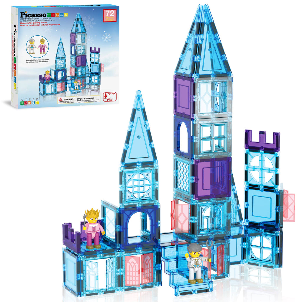 FROSTY WONDERLAND: Magnetic Building Tiles Immerse in the Ice Winter Theme with these translucent blocks, offering a captivating visual journey for kids. Each tile boasts potent magnets, ensuring steadfast connections for stability during creation. Crafted with strong magnets, these blocks are engineered to endure constant play. A flawless initiation or an expansion to your magnetic tiles assortment, accompanied by 2 charming character figures, 2 hand tools, 1 stairs, operable window and doors.