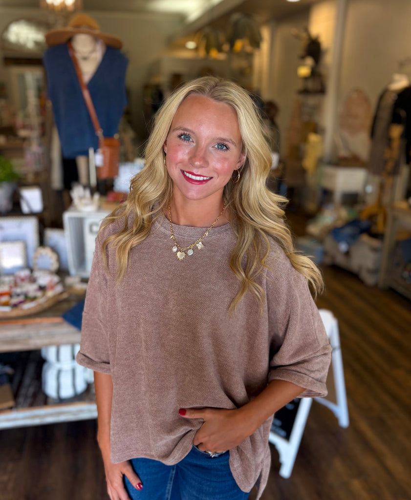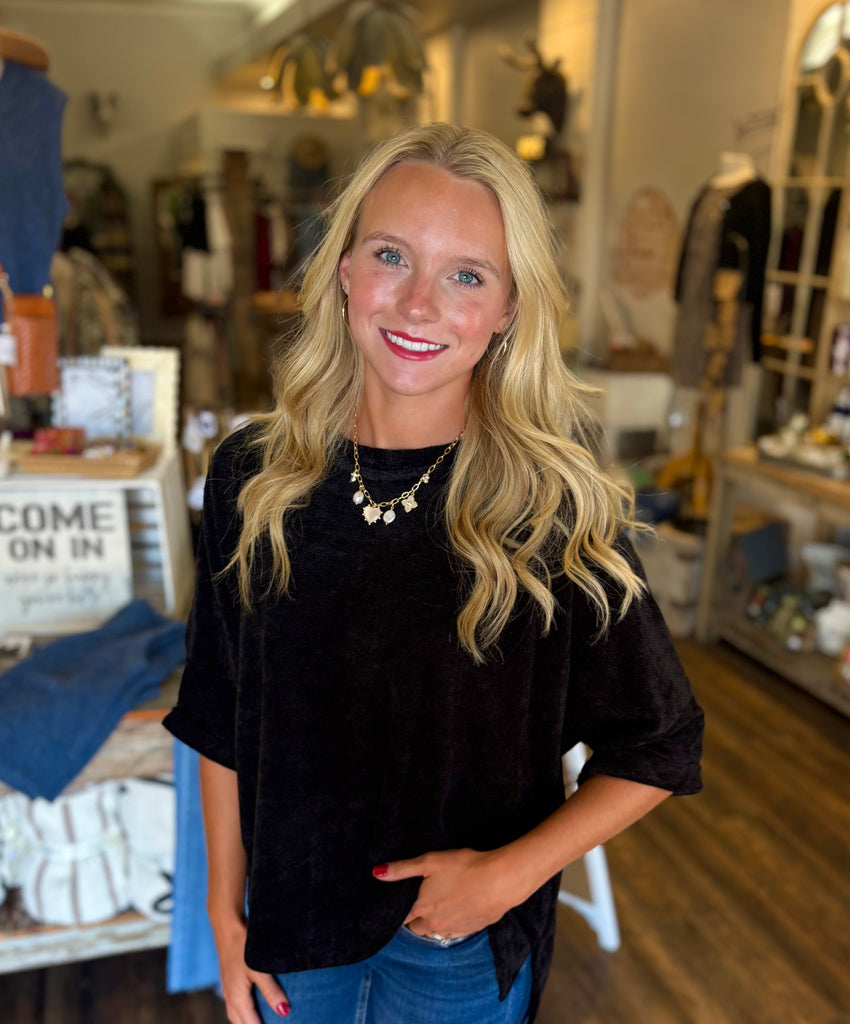 Oversized Chenille 3/4 sleeve high low hem black or latte