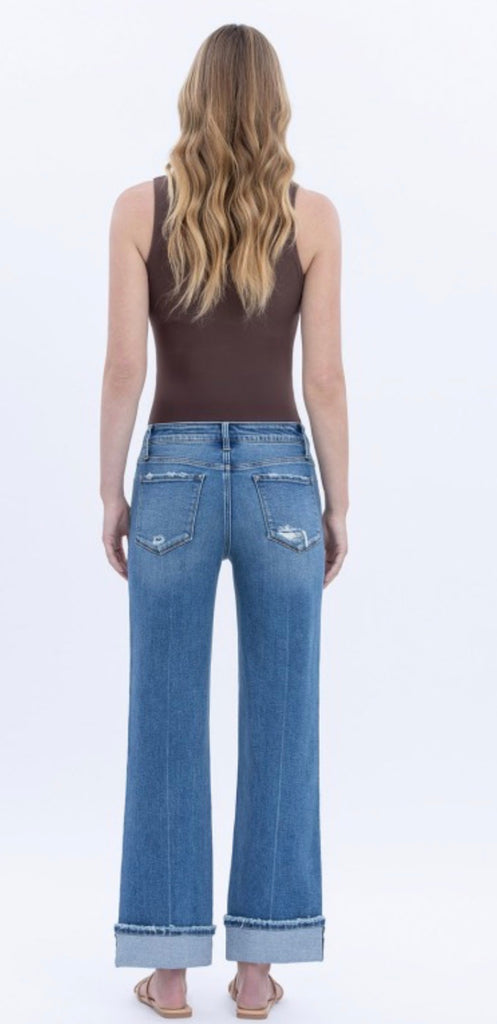 93% cotton 4.8% polyester 2.2%spandex. Jeans can be uncuffed.