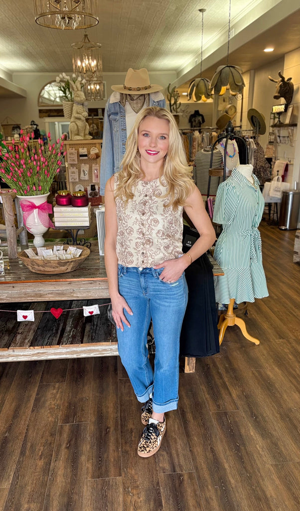 This floral sweater vest is the perfect blend of feminine and vintage-inspired style. Featuring a soft knit feel with an all-over floral pattern, this piece is finished with a full button front and a relaxed, easy fit. Wear it on its own or layer it over a long sleeve or blouse for effortless seasonal styling.