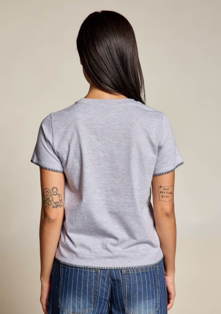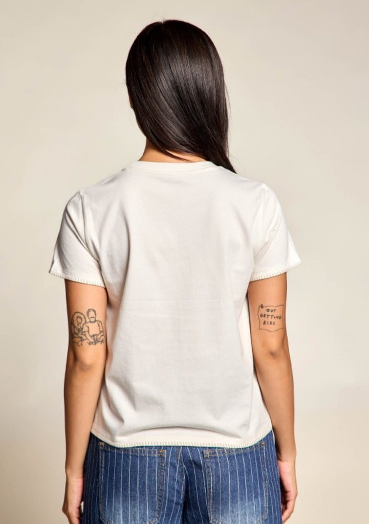 - Short sleeve tee with whipstitch trim
