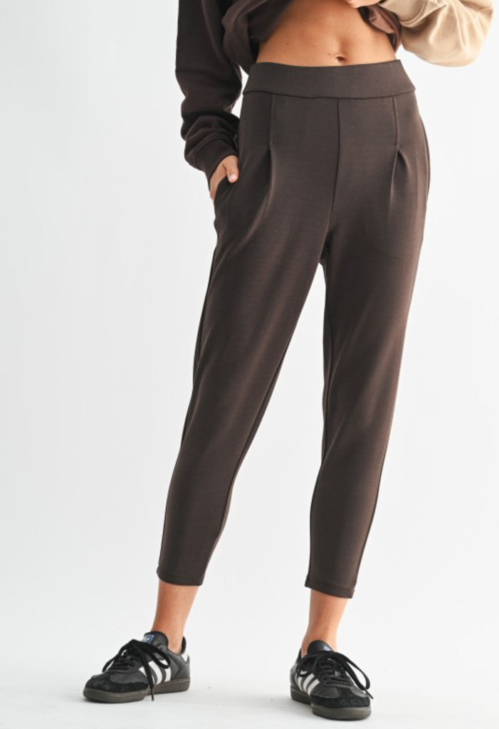 Super soft Laguna pleated tailored 7/8 pants. Pairs well with the Laguna pullover hoodie and Laguna scuba jacket.