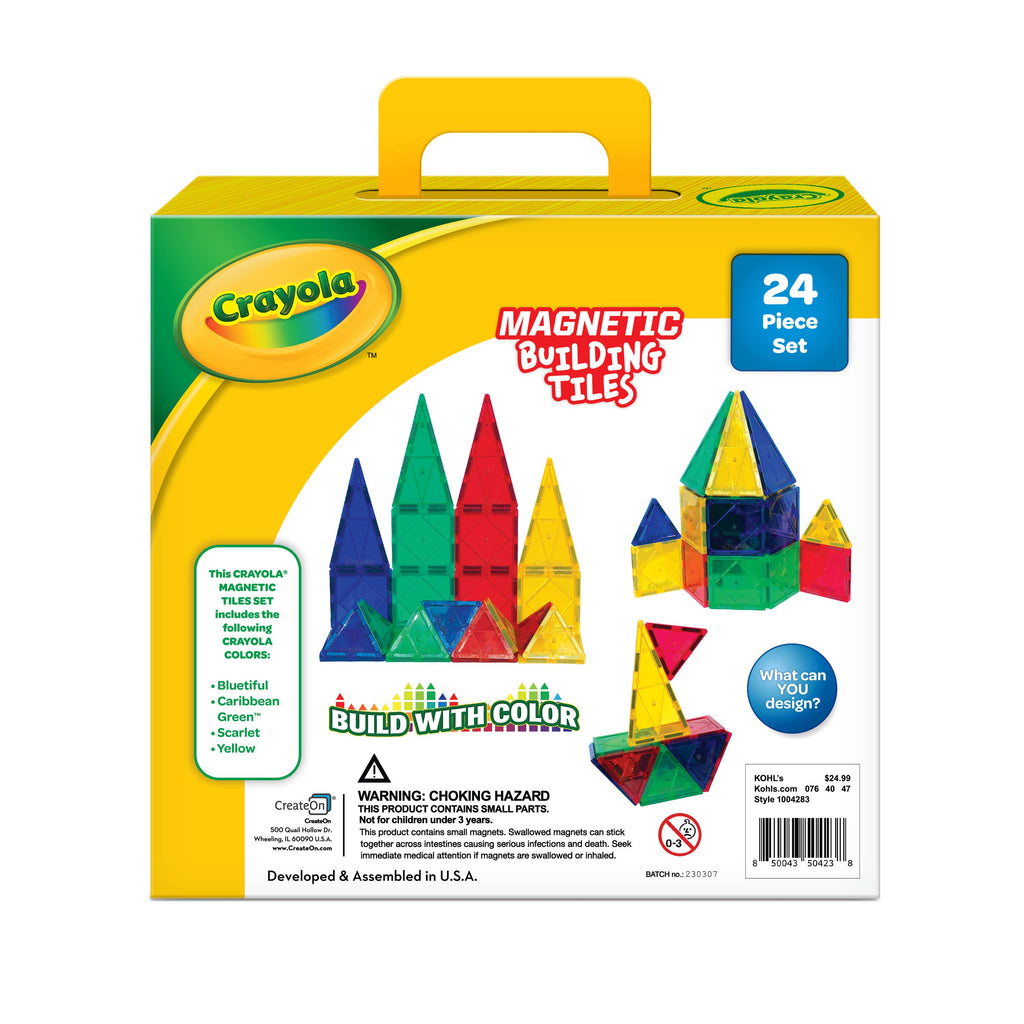 Experience the colorful world of Crayola® and these “Bluetiful” magnetic tile play sets, that bring colors and steam play together into one! Whether your littles are imagining tall castles, rockets, mazes, or just endless play patterns of vibrant Crayola® magnetic tiles, if they think it, they can build it. Our sets bring iconic colors like Caribbean green, scarlet or just plain ole’ yellow to interactive play and building imaginations with hands on play. Nothing says quality, possibility, and creative fun better than Crayola® and we have captured this in our unique curated magnetic tile sets. Don’t let the fun stop at one, our line of Crayola® magnetic tiles includes many of your favorite patterns and colors to delight any crayon enthusiast! Enjoy all our Crayola magnetic tile inspired sets, mix and match them for hours of endless creating and fun.