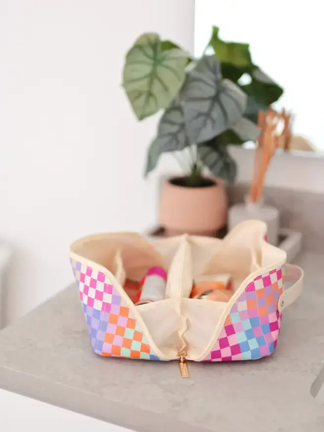 Our Hold All Cosmetic Bags are the ultimate sidekicks for life on the go! Their unique diagonal zipper design allows them to open fully, keeping all essentials neatly in place and eliminates the bottomless pit struggle.