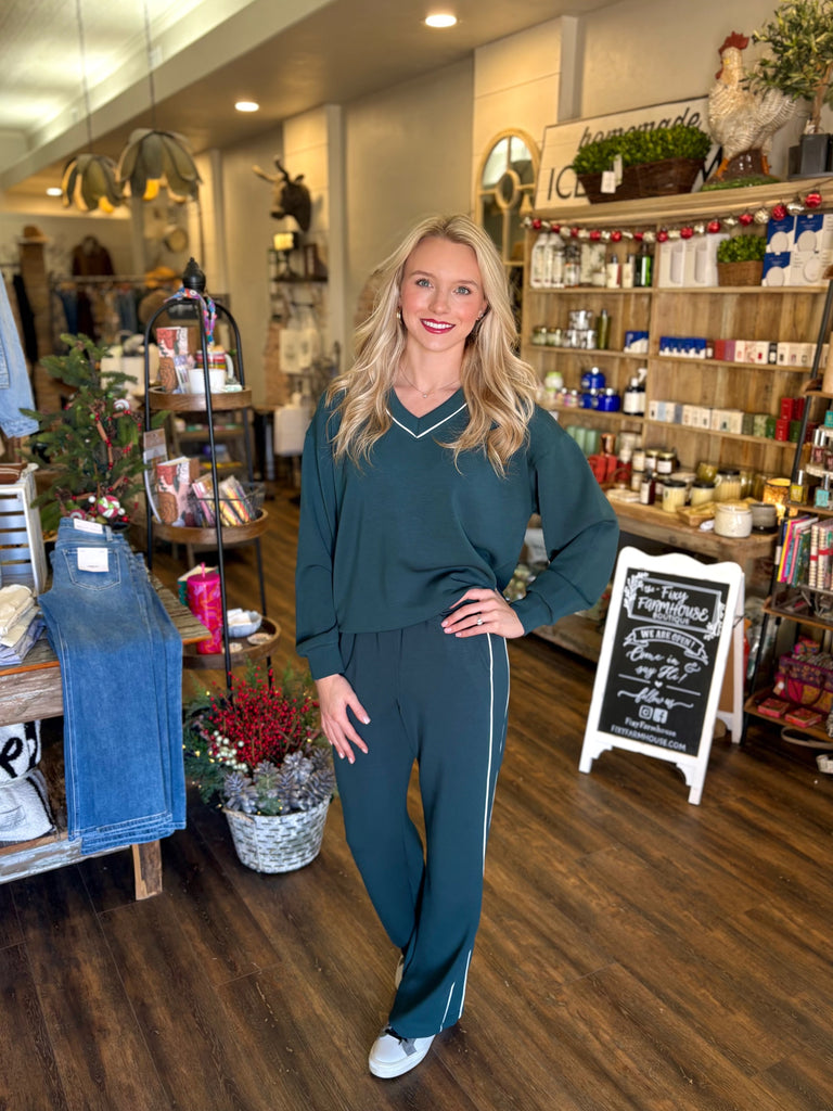 An elevated take on everyday comfort. The Scuba V-Neck Piping Top is crafted from a silky-smooth modal scuba fabric that feels luxurious while remaining lightweight and breathable. Designed with a relaxed fit, dropped shoulders, and subtle piping detail along the neckline, this top delivers a polished yet effortless look you can wear anywhere.