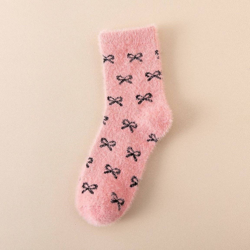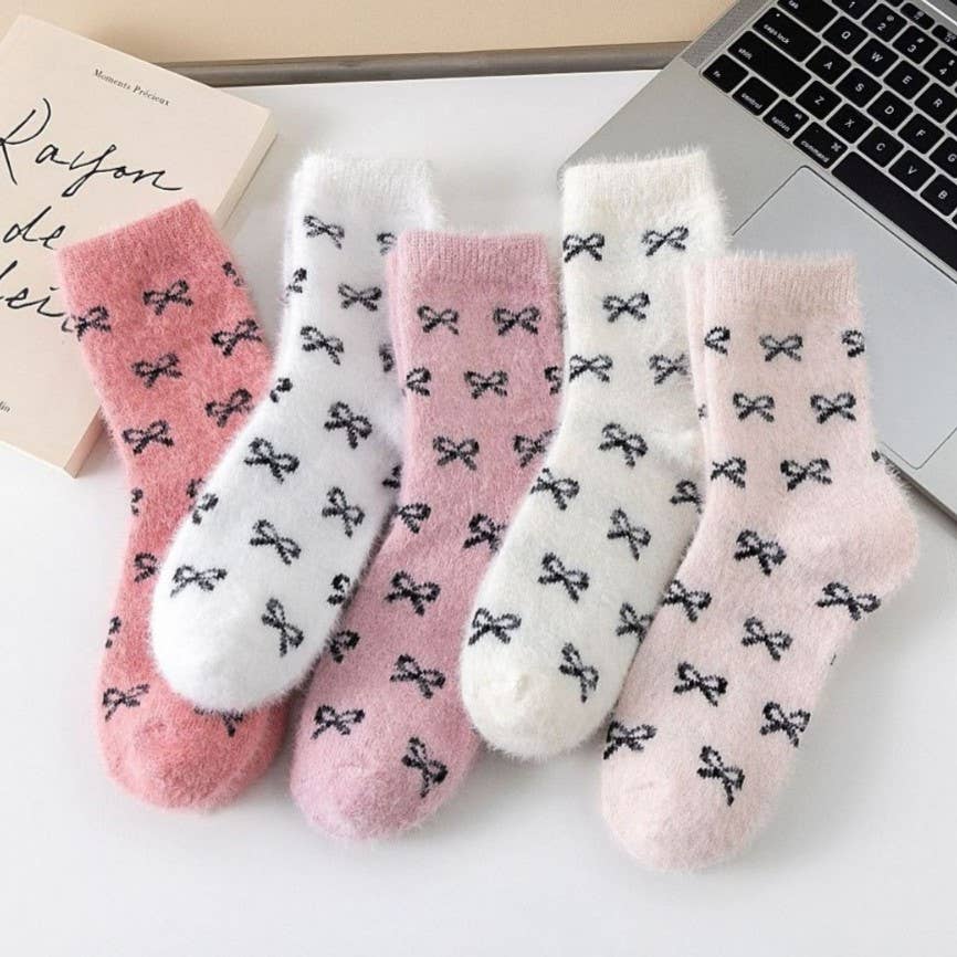 Bow Fluffy Home Plush Socks