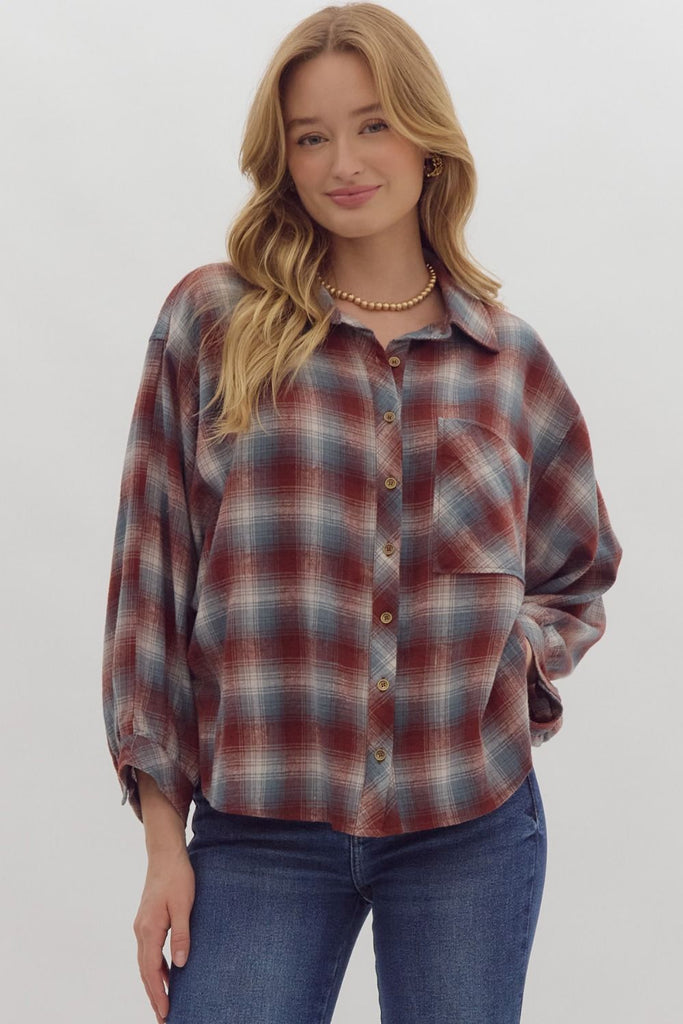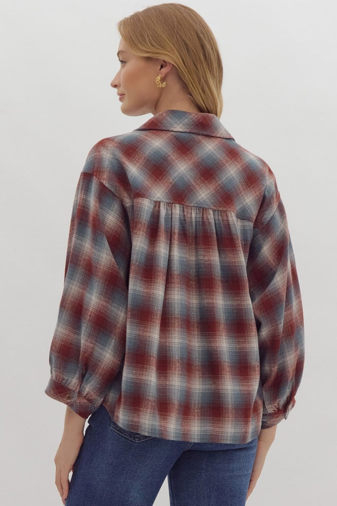 3/4 Length button down plaid shirt