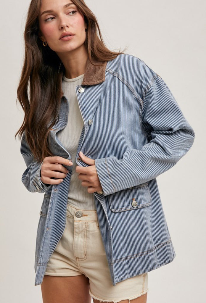 Denim and corduroy collar barn coat.