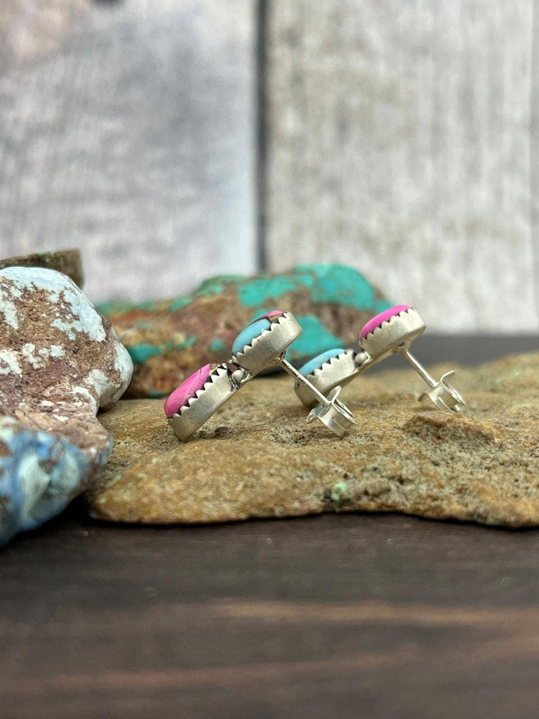 Handmade Sterling Silver Cotton Candy Studs with Signed Nizhoni
