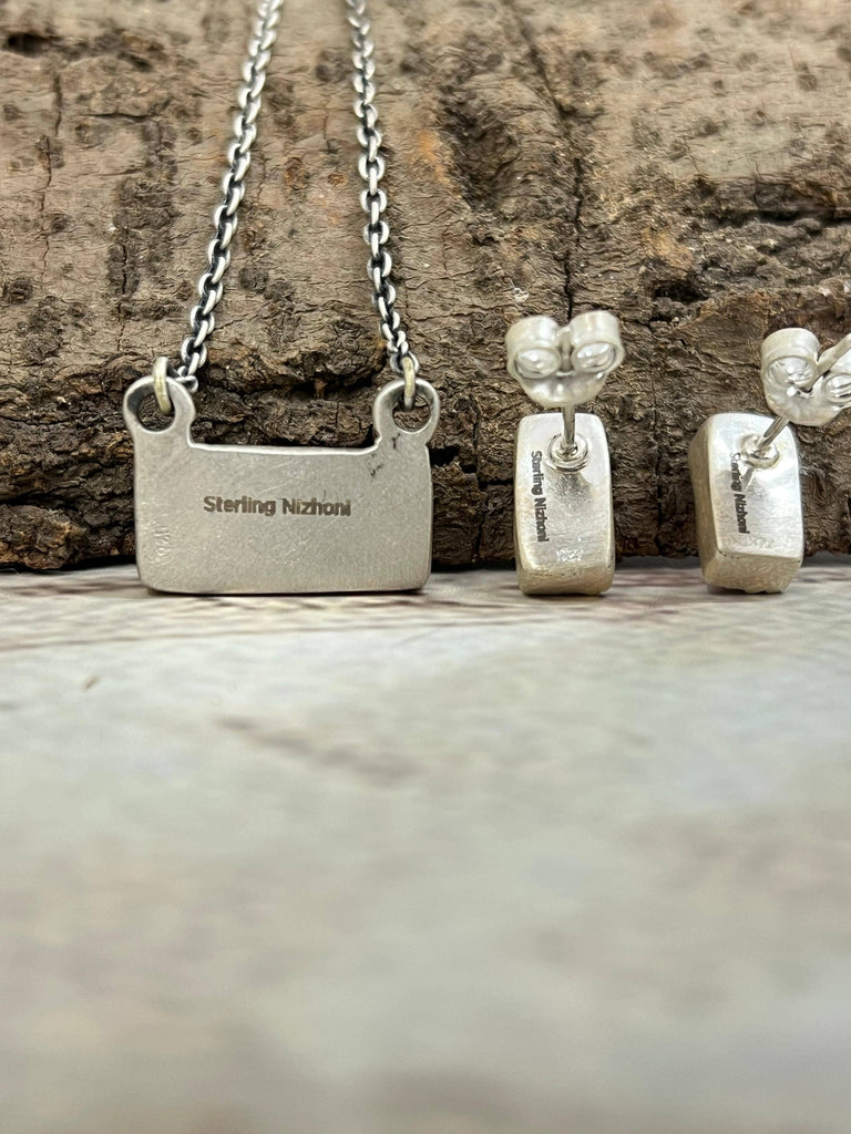 Handmade Sterling Silver Cotton Candy Turquoise Necklace Earrings Set with Signed Nizhoni