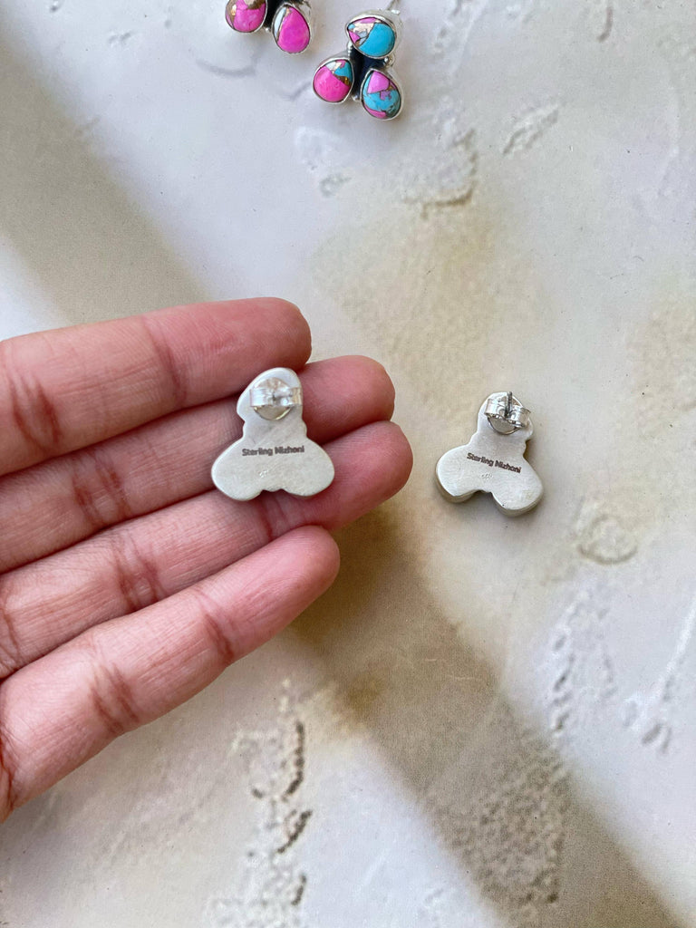 Beautiful Sterling Silver 3 Stone Post Earrings. Such amazing craftsmanship! Measuring 58 inch long and 5/8 inch wide. Stamped Sterling and Nizhoni. Absolutely gorgeous!