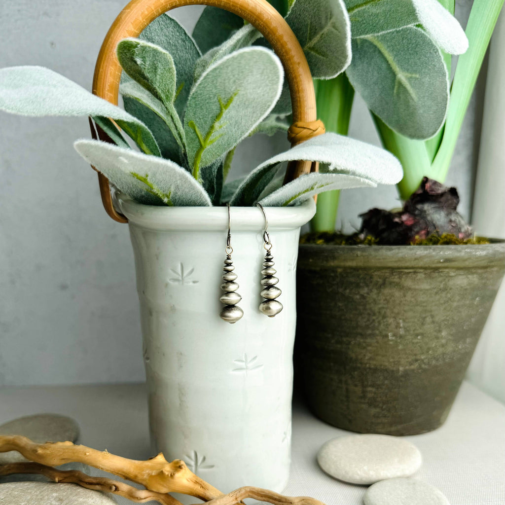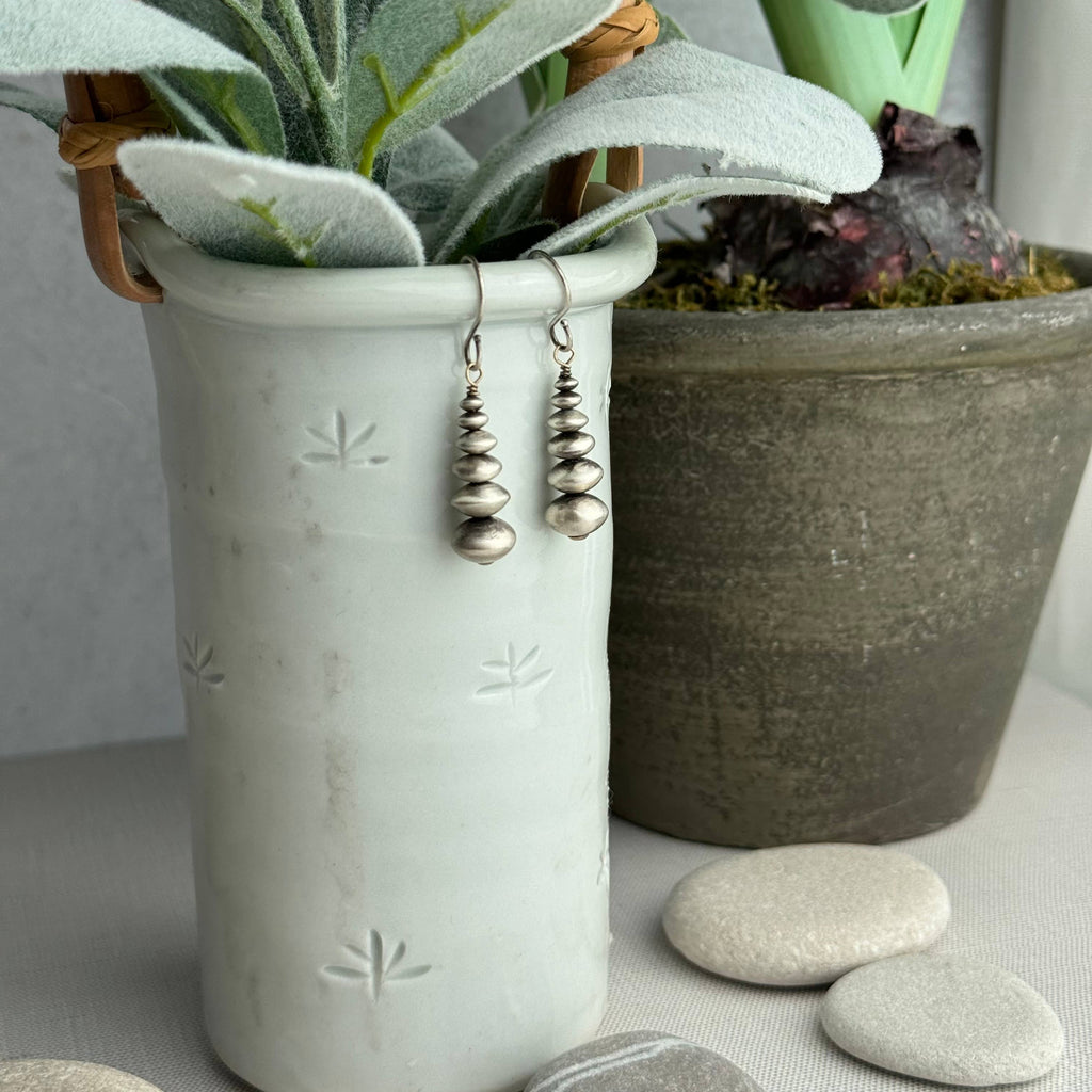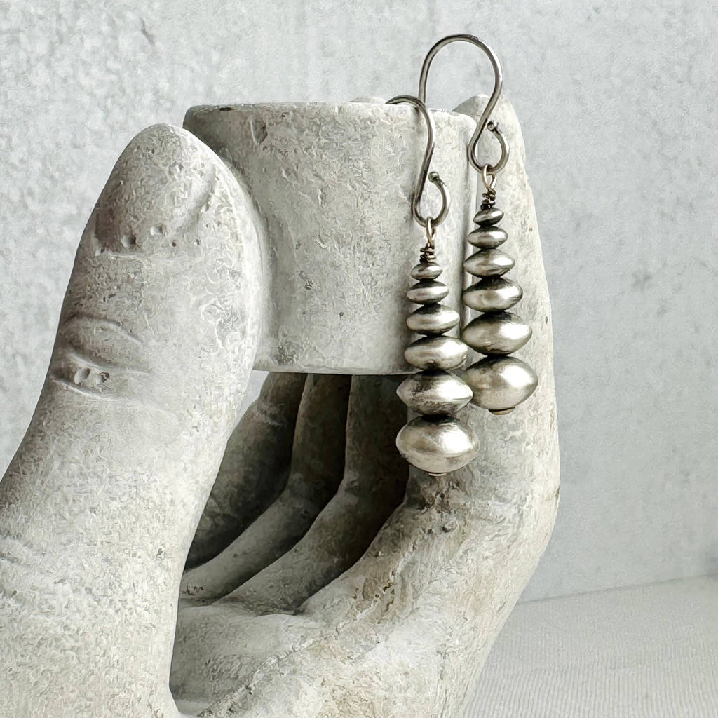 These earrings are sterling silver, 1.25”, and light weight!