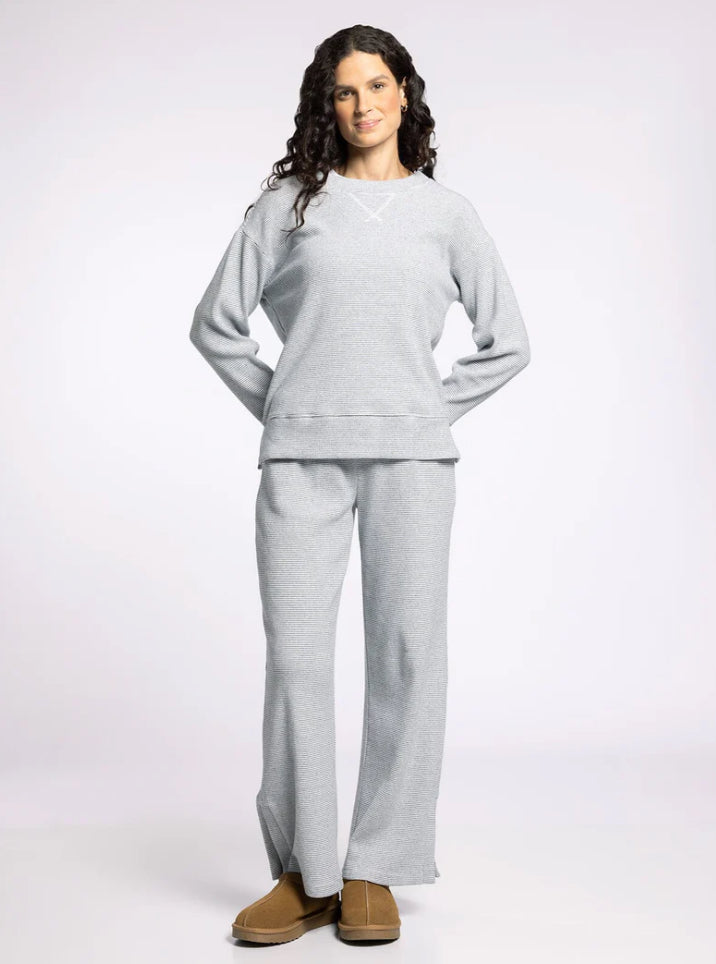 An elevated essential designed for everyday comfort. This soft knit pullover features a classic crew neckline with a relaxed drop-shoulder fit for an effortless, laid-back look. Crafted from a lightweight, stretchy fabric, it offers all-day comfort while maintaining a polished silhouette. Perfect worn on its own or styled as a matching set with the coordinating lounge pants.